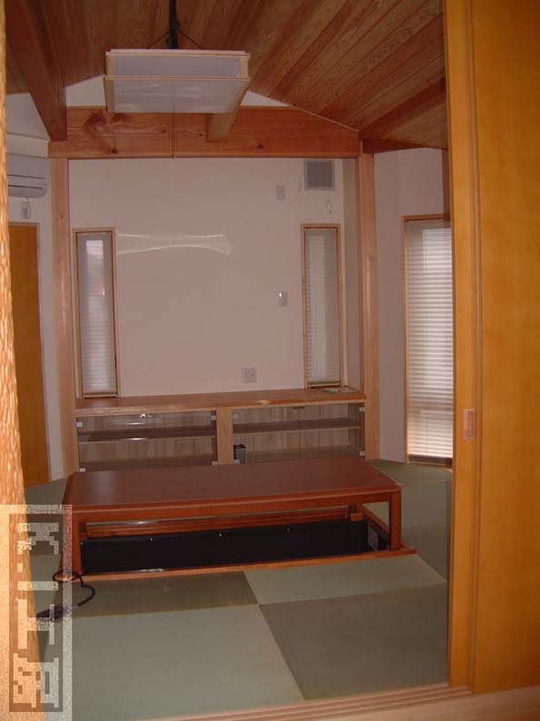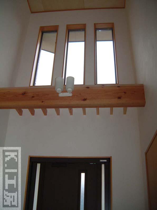 板無垢材を使用していま す。内壁材も自然素材で健康に最も良い漆喰を全ての壁に使用しました。漆喰は常に呼吸しているので湿度を調整し空気を常に浄化します。また、左官仕上げのため何年たっても味 があり、飽きがこないです。入り口の柱は樹齢130年物の天然日光古杉変出絞り丸太を使用しました。和室の化粧梁は樹齢80年の白松を使いました。白松は昔おにぎり等を包み、お弁当箱代わりに使用されていました。それだけカビ等がつかない材料でなかなかの希少価値のあるものです。